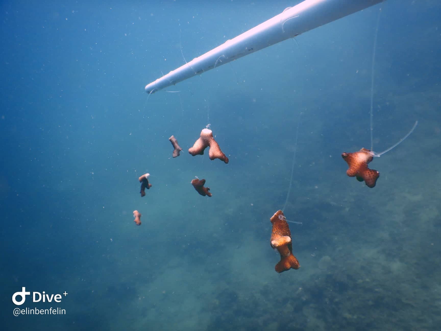Along our House Reef, we have three coral trees that we have built in a bid to do just that. Each of the trees is located in a different place along our House Reef. These trees are spread out to experience different environmental conditions – for example, one is close to the river input from land, so gets more silt input, while another experiences strong current.
