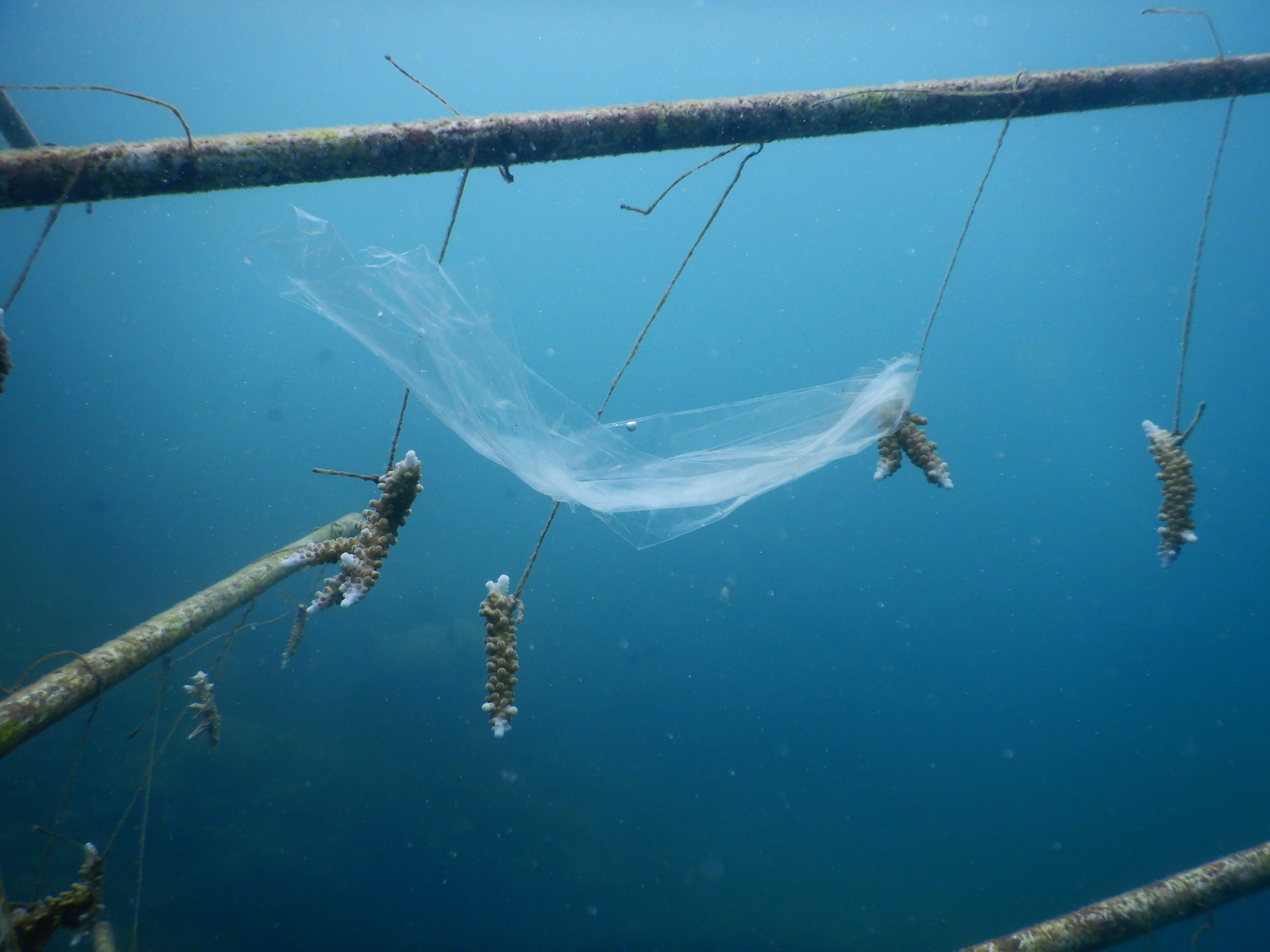 Yes you see lots of rubbish sticking out the sediment and covered in sand which is going to affect anything that burrows in the sand, and then you also see a lot that is wrapped or smothering coral. If it is tangled, or doesn’t move, then that coral is just going to die. I don’t think I’ve seen any fish-plastic interaction, but it probably inevitably happens when we’re not there to see it.